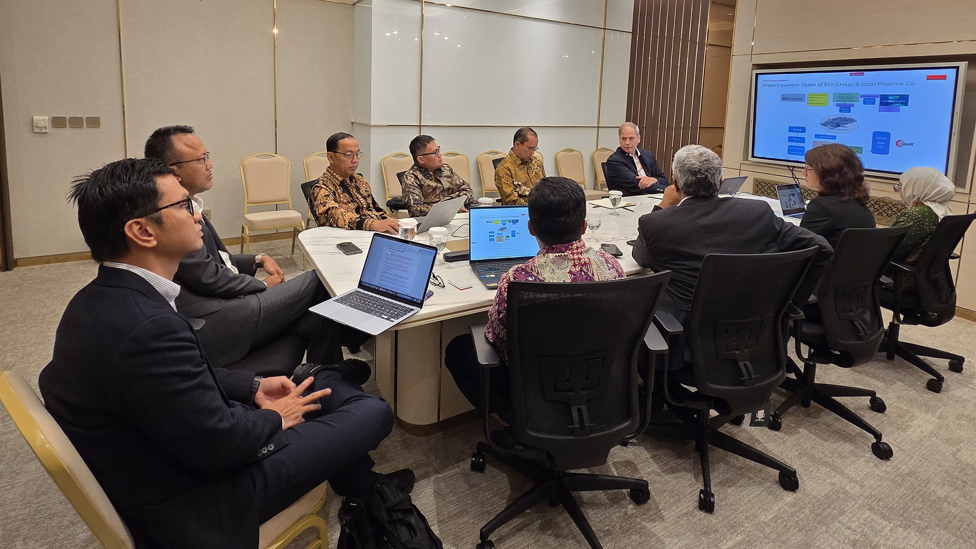 The delegation featured a synergy of global technology providers: Mr. Dirk and Mr. Marella from Glatt, along with Mrs. Ale Lutz from Hermes. On the host side, the session was scrutinized by Mr. Rulit, Mr. Tri, Mr. Djoko, Mr. Arkamelvi, and Mr. Arsyad from EGI Resources representing the core leadership driving Indonesia’s industrial transformation.